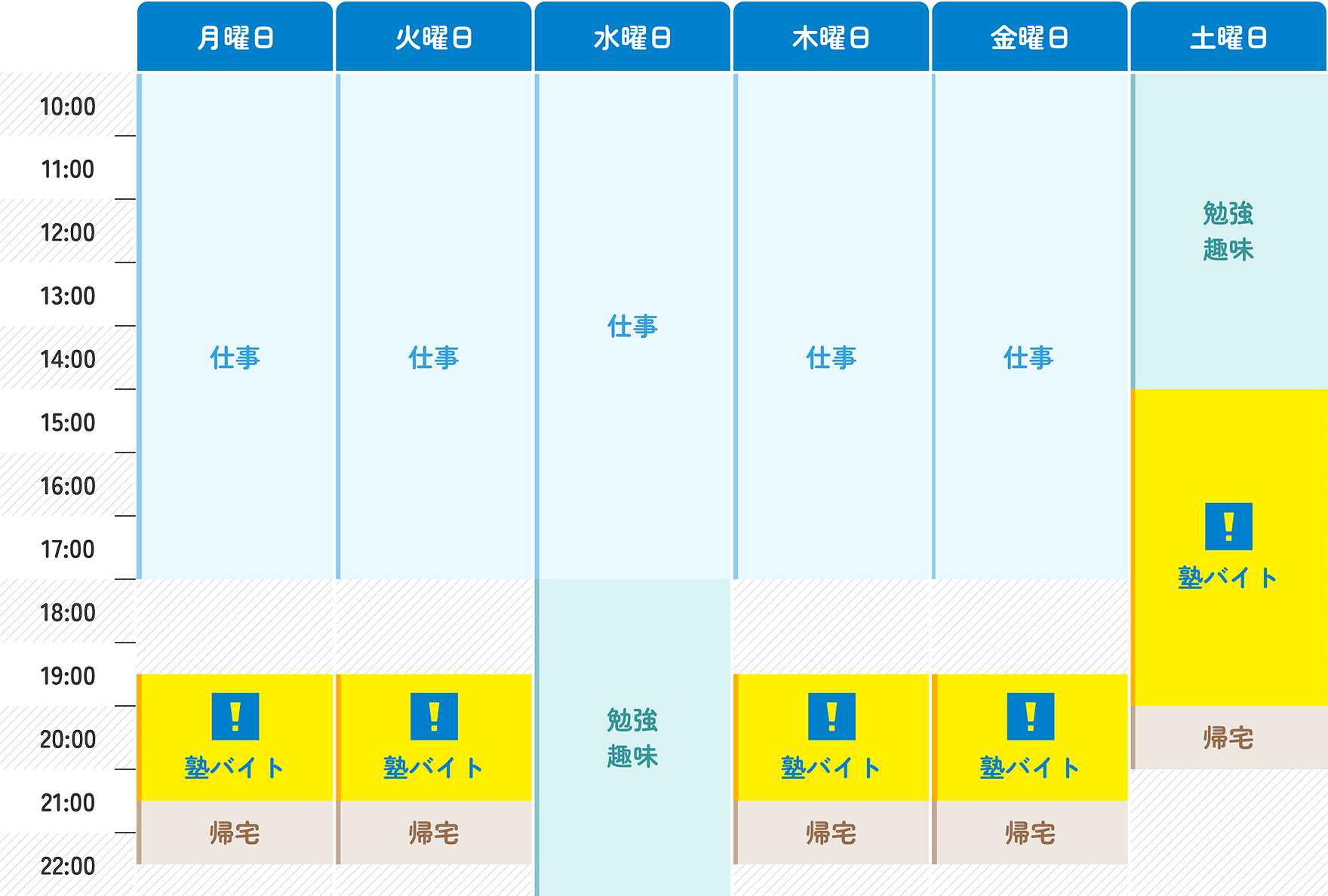 フルタイムやWワーク(副業)の方も大歓迎ですし、資格勉強や夢や目標を追いかけている間のスキマ時間で働くこともできます。また、社員登用(正社員/教室長)もありますので、ご希望の働き方がきっと見つかります。