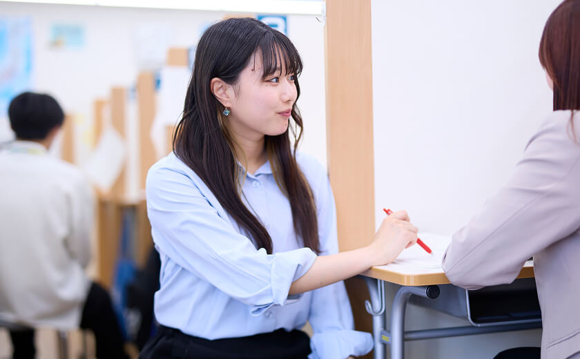 - A 大事なのは、目の前の生徒に対する伝えたいという思いや、相手を理解しようという気持ちを持つこと。多くの生徒とコミュニケーションをとるうちに、生徒一人ひとりに合った関わり方が自然と身についていきます。