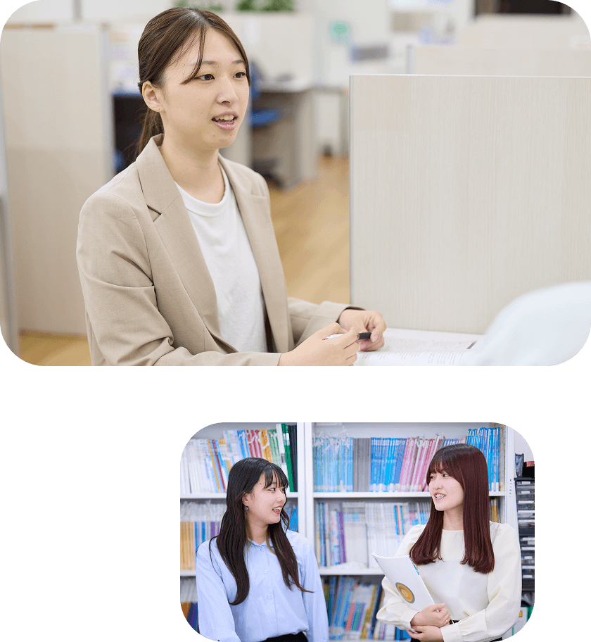 講師経験から得たコミュニケーション力、判断力、交渉力などは、「就活に役立った」と多くの先輩講師から聞きます。インターンシップ、就職活動、ゼミなどの期間中は、シフト調整もできますので、お気軽にご相談ください。
