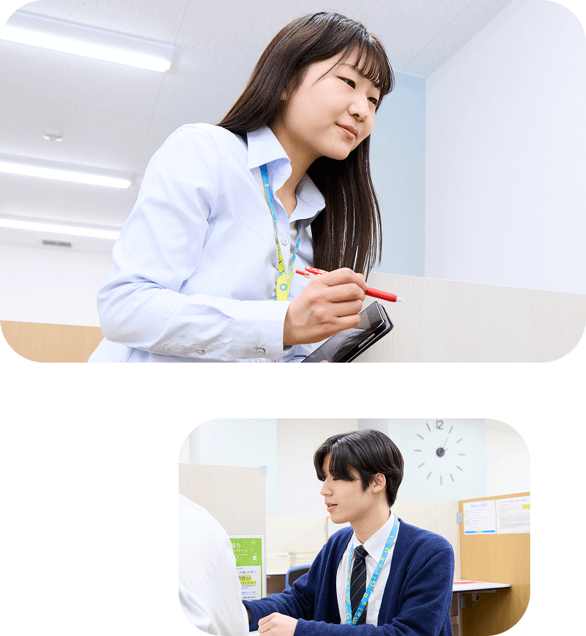 初めてでも安心の研修&フォロー体制でお待ちしています。学業との両立はもちろん、同世代の仲間も多いので安心です。テスト、サークル、ゼミなどの期間中は、シフト調整もできますので、お気軽にご相談ください。